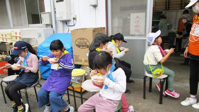 皆さんは「おにぎりや味噌汁が美味しい!」と何度もお代わりをする人が続出で、味噌汁の大鍋はたちまち底をつきました。