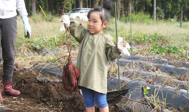 四街道市からご参加の荒木栄仁 君は、「芋掘りは楽しかったし、かなり大きなさつま芋が掘れてよかった」とのことですし、お母さんは、「落花生掘りはチョウ楽しかった!」とのご感想でした。