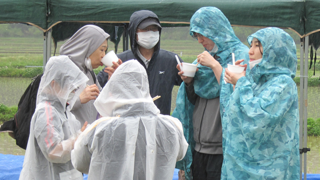 お待ちかねの昼食時間となりましたが、雨脚は強くなるばかりで皆さん寒そうで残念なランチタイムとなってしまいました。