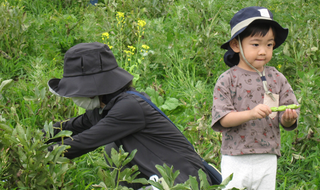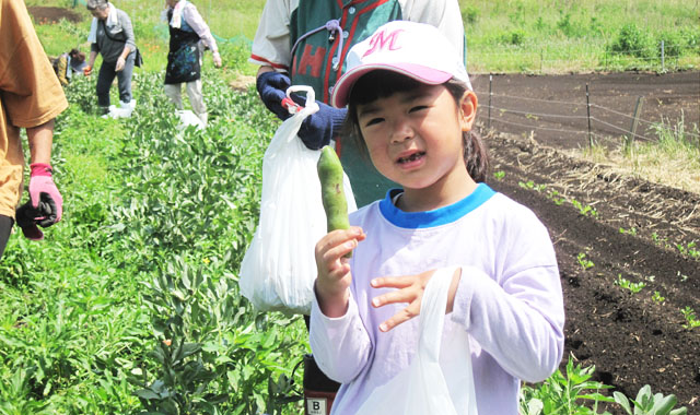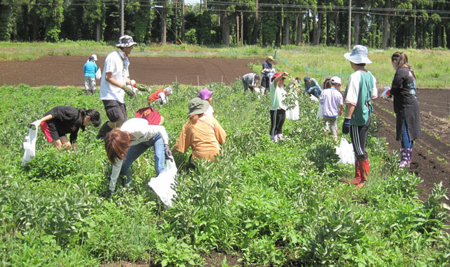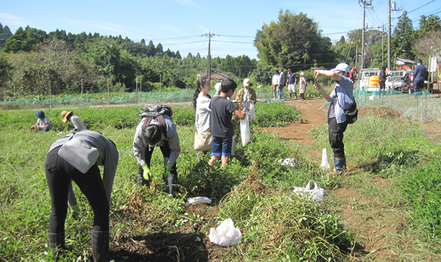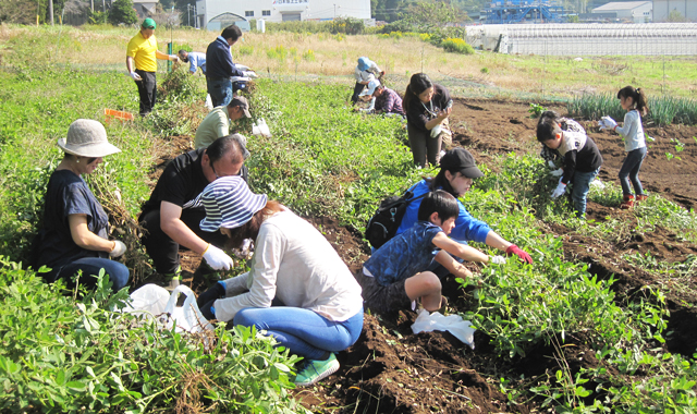 千葉市をはじめ町内外から、ご夫妻や親子連れなど9組22名様にご参加いただき、そら豆の収穫を行いました。