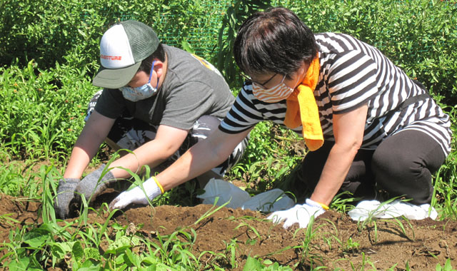 猛暑で熱中症も心配されましたが、テントで休憩をとりながら収穫するご家族や、なかには「暑さなんて何のその!」とばかりに頑張って一所懸命掘る方も見受けられました。皆さんはそれぞれに、ご家族でまた、お友達同士で力を合わせ“とうや”の収穫を楽しんでいました。