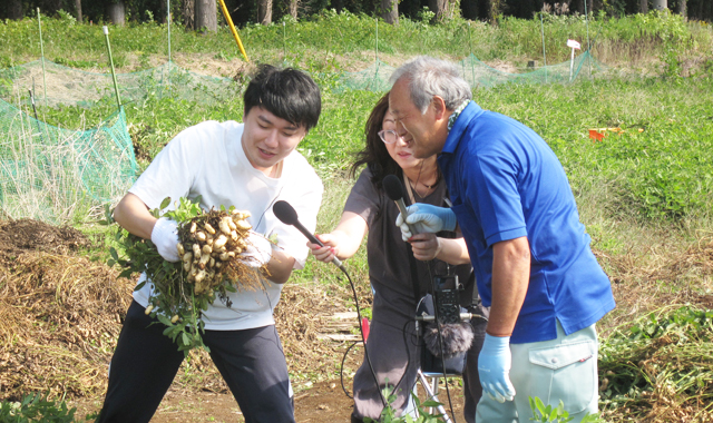 放送中、内田アナ(以下アナウンサーはアナと表記します)から、岡部ながらグリーンツーリズム会長に、「ながらグリーンツーリズム」についてや、また、「今の季節にできる体験は何がありますか?」などの質問に、岡部会長からは、「この時期、“さつま芋”掘りや“落花生”掘りに、“味噌”造りや“餅つき”、“太巻き花寿司”巻きなどの体験ができますよ」と体験メニューを紹介し、また「体験者は主にご家族ですか?」との質問に、「日本の文化に触れようと、“餅つき”などは外国の方が体験に来られますよ」と答えていました。