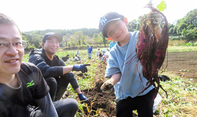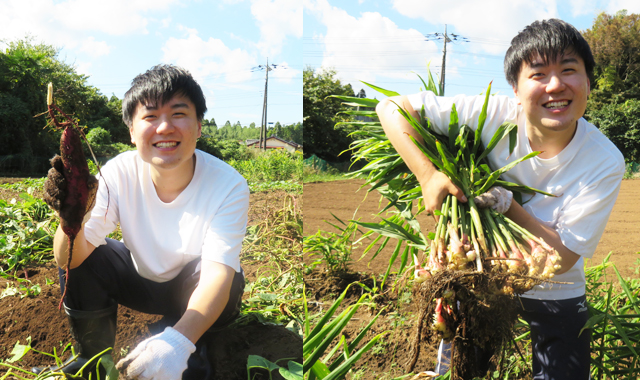 焼き芋でお馴染みのしっとりと甘いさつま芋“紅はるか”にホクホクした食感の里芋に似た“セレベス(赤目芋)”そして、太くて白身が長くトロット甘い長ねぎの“夏扇”、さらには、香りと辛みのバランスの良い生姜“中生姜”の収穫体験まで。もちろんサプライズ収穫体験の料金は無料です。