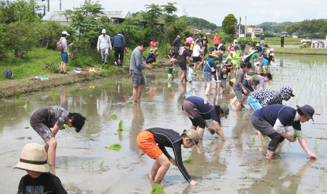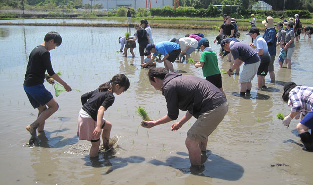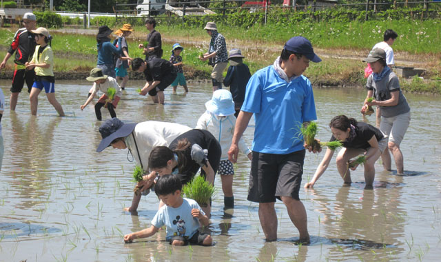 今年の田植えも、東京や神奈川に千葉方面から大勢の親子連れやご夫婦、友達同士にご参加を頂きました。