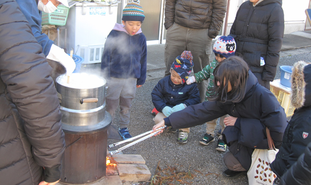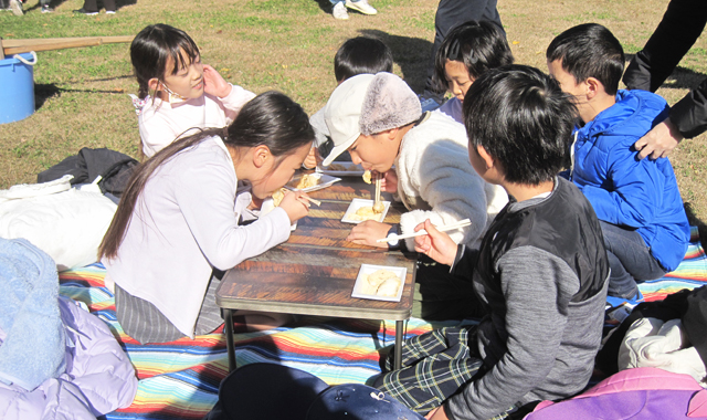 皆さんはさつま芋を具材にした味噌汁を飲む機会も少ないのでしょうか、「美味しい!」と言いながら、何と、5杯もお代わりしたお友達もいました。