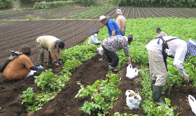 梅雨前線の日本列島での停滞による『令和2年7月豪雨』は、九州地方をはじめ各地に甚大な被害をもたらしています。千葉県でも前線の影響による雨の日が続いていましたが、幸い曇り空の下で『ジャガイモの収穫体験』を実施することが出来ました。