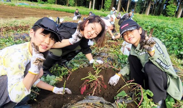 木更津から、ご家族4名様でご参加の そらちゃん(小2)は「ママこっちにもあったよ」と力を合わせてジャガイモを掘り出し、パパの向けるスマホにVサインで応える微笑ましいご家族もいらっしゃいました。